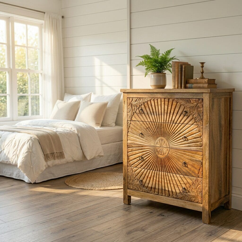 Hand-carved Natural Wood 5-Drawer Dresser